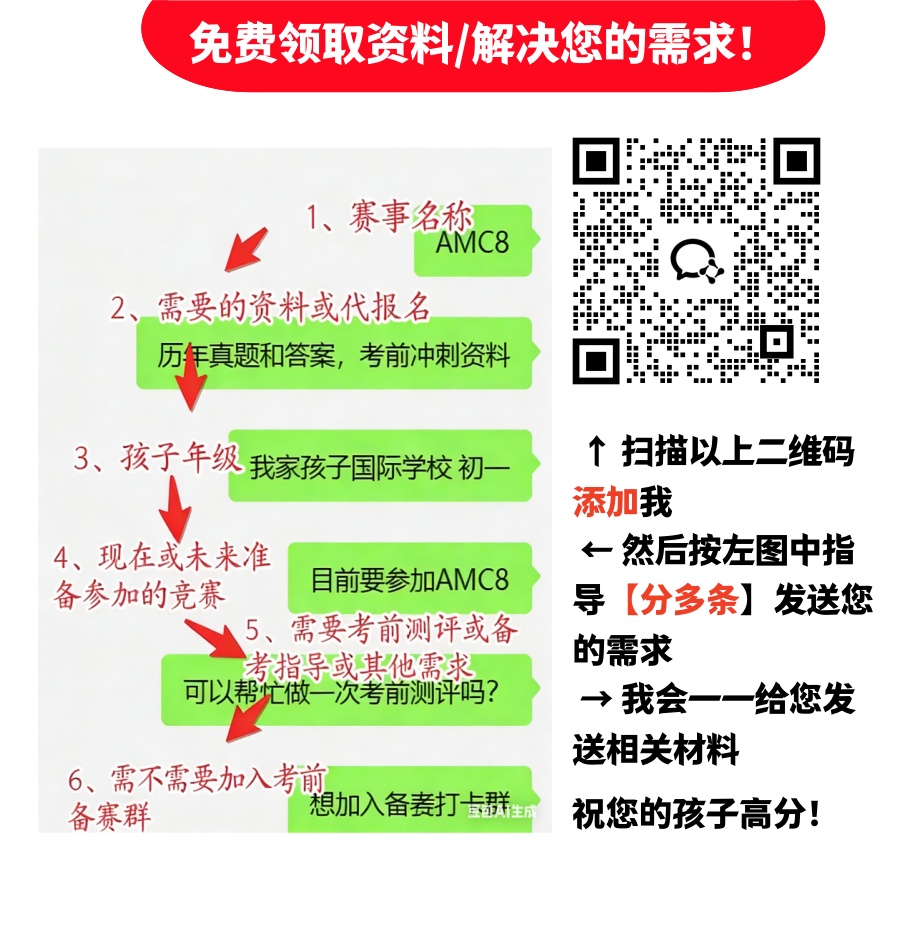 扫码免费领取袋鼠数学竞赛全套备赛资料(包含2013-2025全等级真题及解析、易错题及精彩题目集锦、单词手册、新赛季干货资料等)