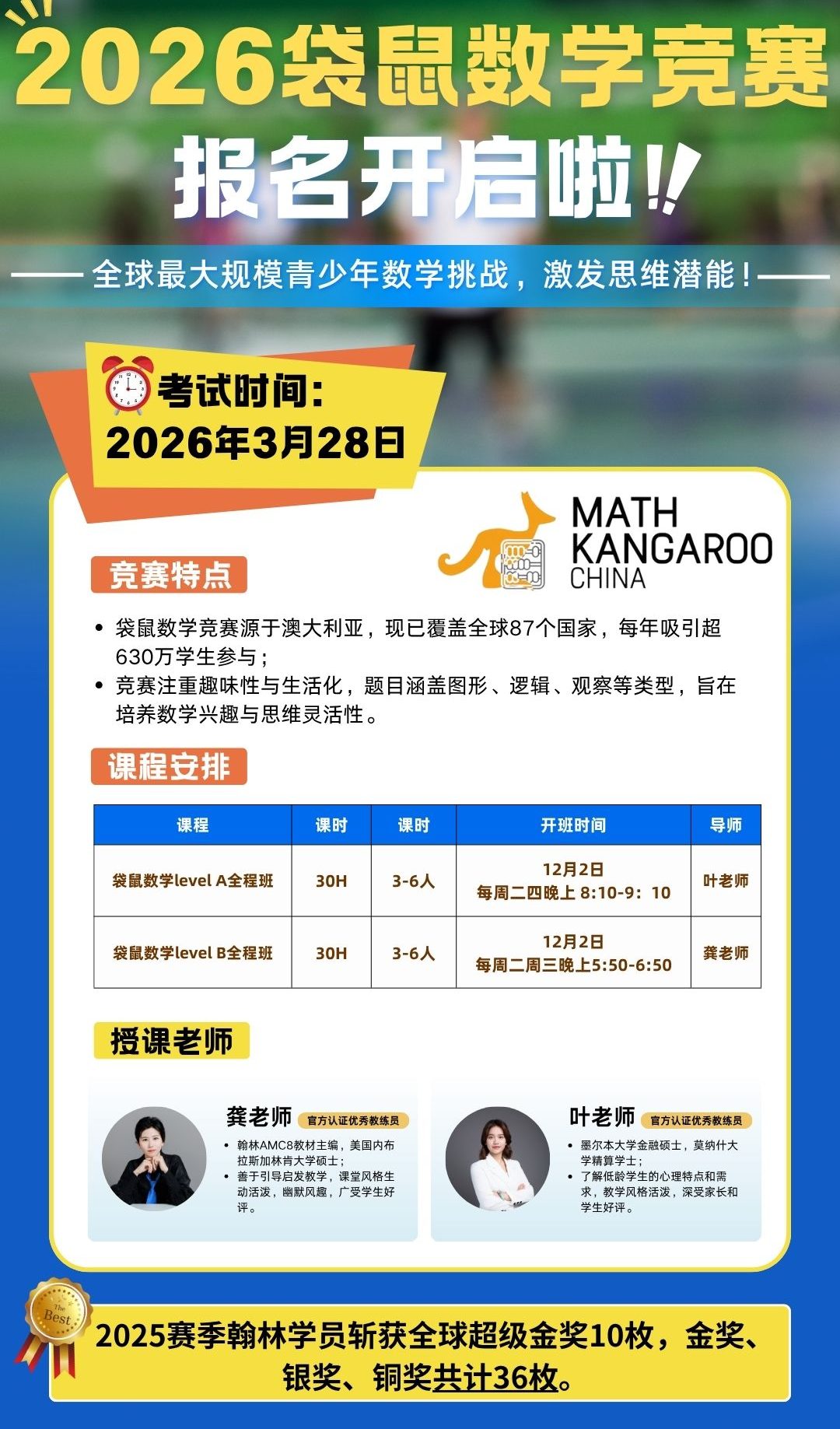 我们的袋鼠辅导课程配有独家自研教材,授课老师均为海内外名校毕业,具有丰富的竞赛教学经验,并根据不同基础学生开设了不同的班课,真正做到有的放矢,事半功倍!可以试听一下~