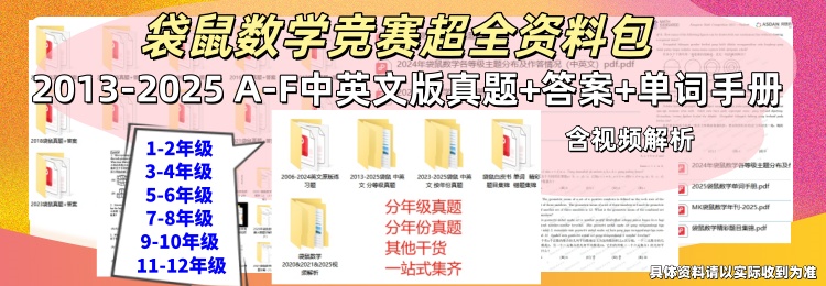 2013-2024袋鼠数学PDF版各等级完整版真题+答案解析+新赛季备赛干货⇓